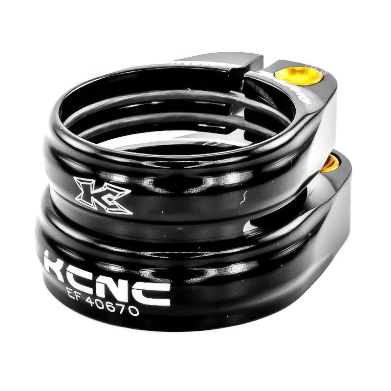 Die KCNC MTB Sattelklemme SC13 mit 2 Schrauben verhindert zuverlässig ein Verrutschen von Carbonsattelstützen. Die obere Schraube hält die Sattelstütze, die untere Schraube klemmt die Sattelklemme an den Rahmen.