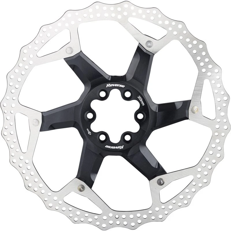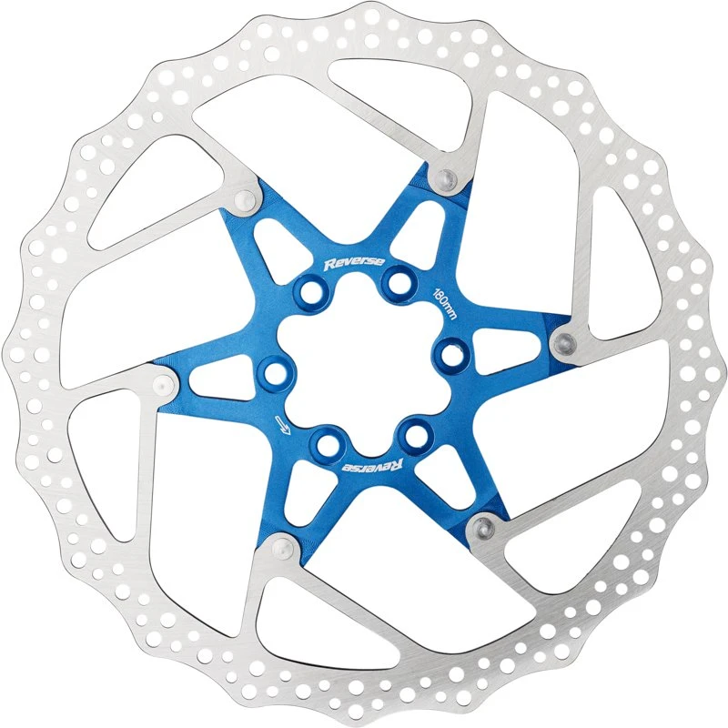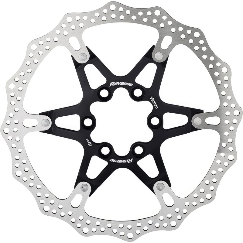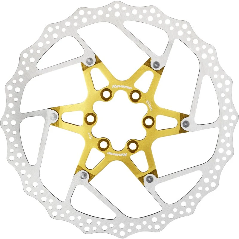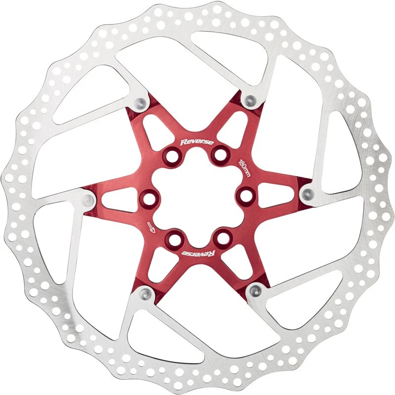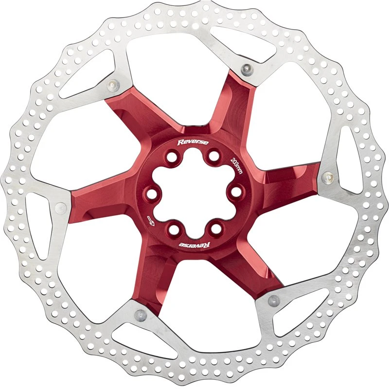 Zweiteilige Bremsscheiben (Floating Discs) bestehen in der Regel aus einem Reibring aus Edelstahl und einem Aluminium-Spider, die über eine Vernietung kraftschlüssig mit einander verbunden sind. Eine solche Bauform bietet außer einem geringfügig höheren Gewicht zahlreiche Vorteile und kann ihre Stärken insbesondere dann ausspielen, wenn beim Bremsen extrem hohe Temperaturen auftreten. In einem solchen Fall bewirkt die zweiteilige Bauweise, dass sich der Reibring aus Edelstahl im Vergleich zu einer einteiligen Bremsscheibe deutlich weniger stark verziehen kann. Dieser Effekt wirkt sich deutlich spürbar auf den Rundlauf der Scheibe aus und führt letztendlich dazu, dass beim Bremsen weniger Vibrationen auftreten und der Bremsvorgang insgesamt harmonischer und gleichmäßiger abläuft. Dies ist insbesondere unter extremen technischen Bedingungen ein unschätzbarer Vorteil und sorgt für mehr Sicherheit. Die geteilte Bauform dieser Scheiben verhindert überdies eine übermäßig starke Wärmeübertragung vom Reibring auf den Nabenkörper und die darin befindlichen Lager, was sich wiederum positiv auf die Lebensdauer und den Leichtlauf der Naben auswirkt. Die zweiteiligen Reverse-Bremsscheiben sind mit in unterschiedlichen Farben eloxierten Spidern erhältlich, wodurch sie an jedem Bike nicht nur für technische Vorteile, sondern auch für einen ganz besonderen optischen Auftritt sorgen.