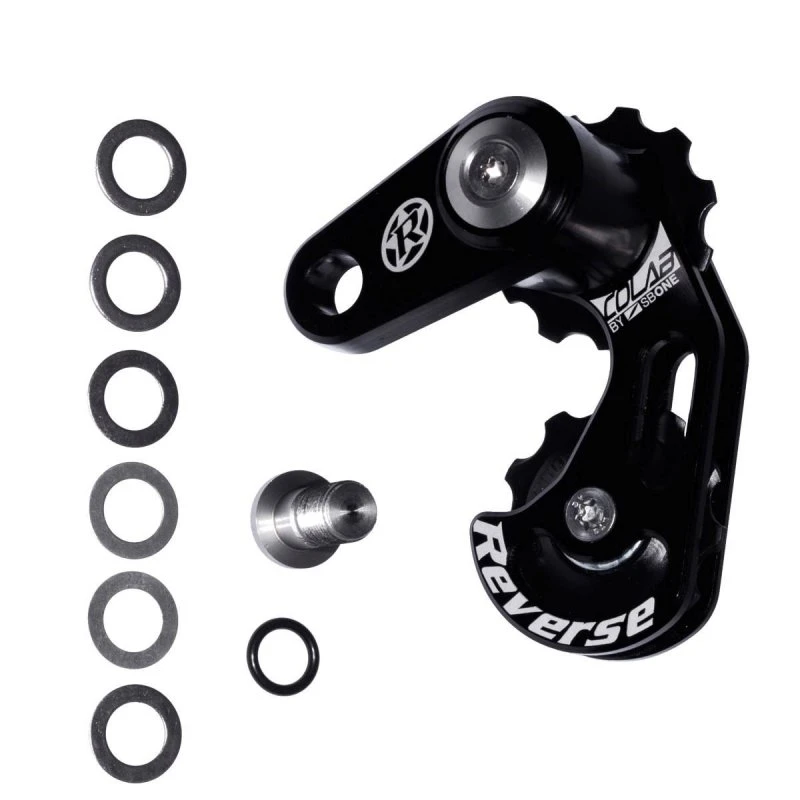 Viele Fahrer die überwiegend in Bike Parks unterwegs sind schätzen die Einfachheit und die zuverlässige Funktion des Colab Kettenspanners von Reverse Components, ermöglicht er doch den Umbau auf einen deutlich weniger defektanfälligen Single Speed Antrieb. Mit dem Colab Kettenspanner bist du die ganze Saison über leise und zuverlässig unterwegs und das alles bei minimalstem Wartungsaufwand. Der Kettenspanner kann problemlos an jedem vorhandenen Standard-Schaltauge montiert und mittels Passscheiben auf die optimale Kettenlinie eingestellt werden. Er besteht aus haltbarem Aluminium, ist kompatibel mit allen gängigen 9-fach, 10-fach und 11-fach Ketten und kann mit Ritzeln zwischen 13 und 17 Zähnen kombiniert werden.